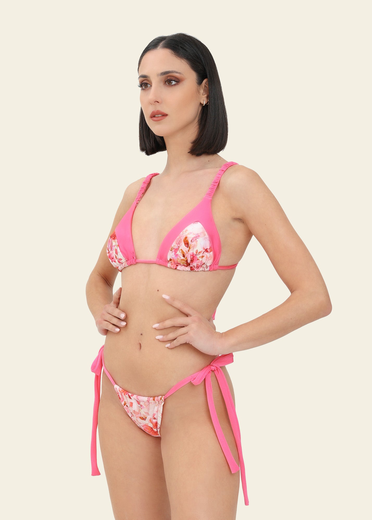 Un modelo de diseño sencillo, triángulo con braguita cortina, que realzará la silueta y se adaptará perfectamente a cada cuerpo.