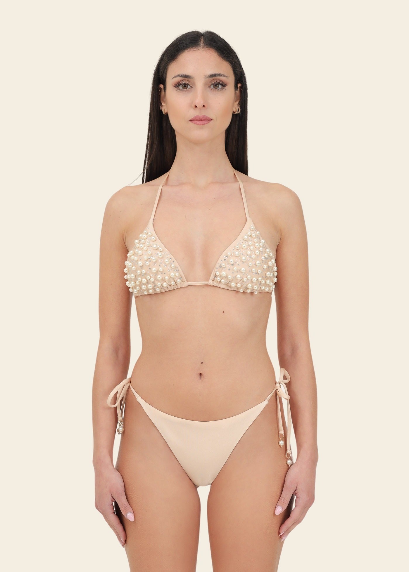 Confeccionado en tejido nude suave y brillante, el bikini Kamila se adaptará a cada silueta gracias al diseño de triángulo, un clásico atemporal revisitado en clave moderna y refinada.